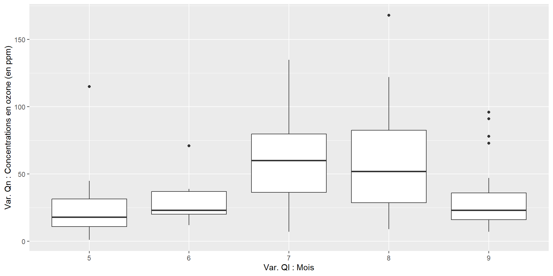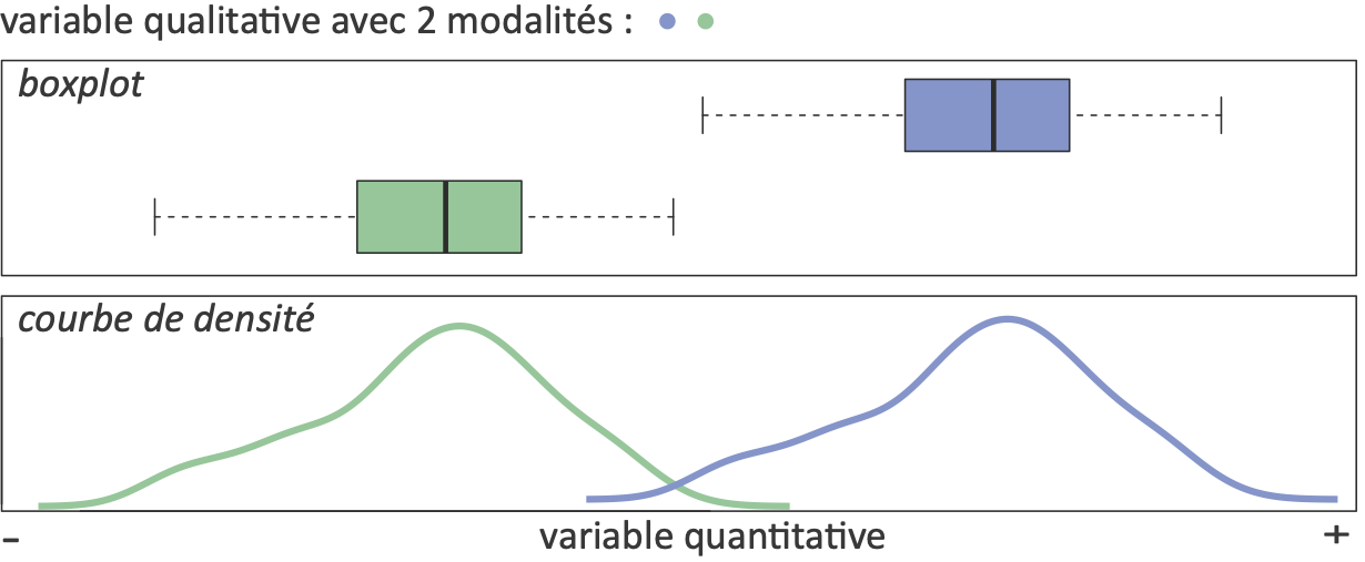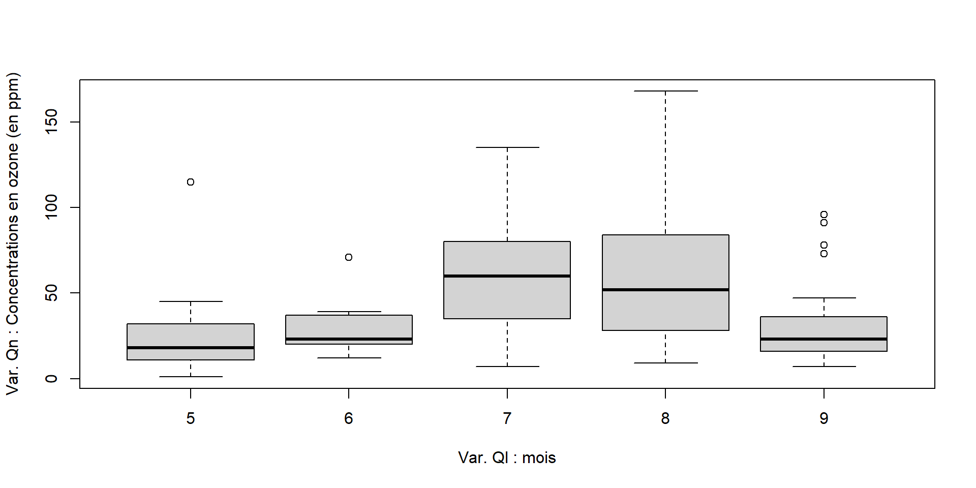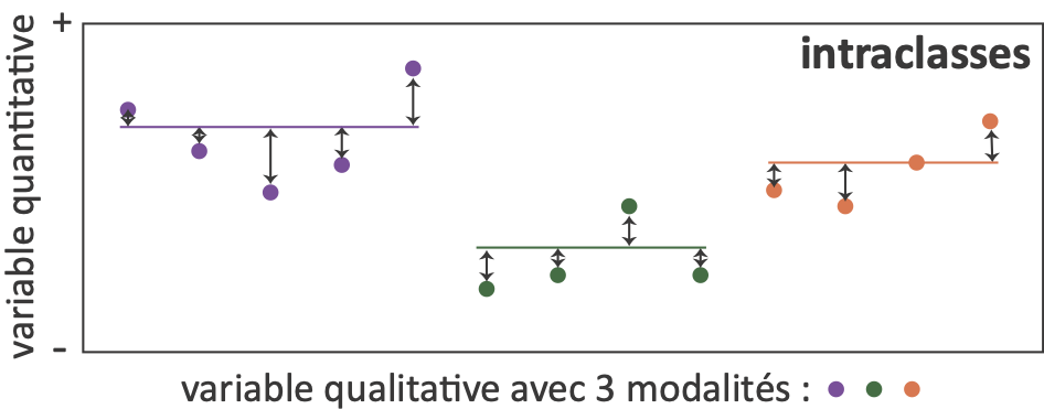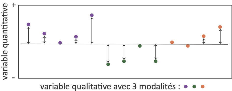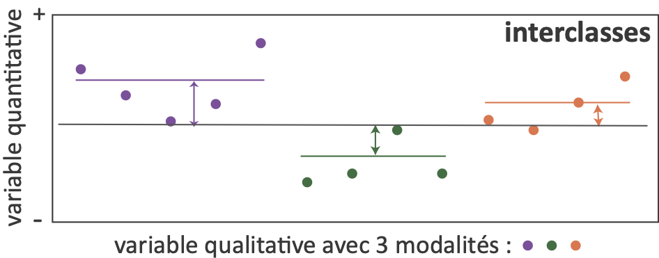 - distribution normale de la variable quantitative dans les classes de la variable qualitative (pour vérifier sous R, shapiro.test())