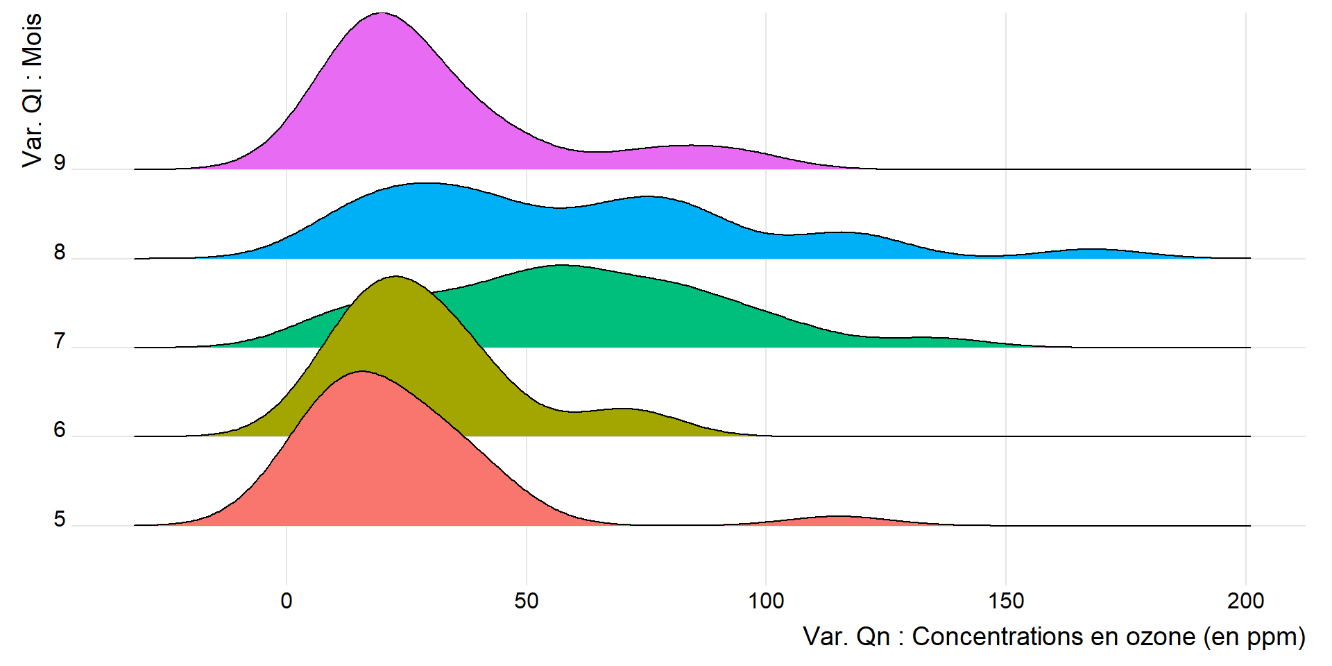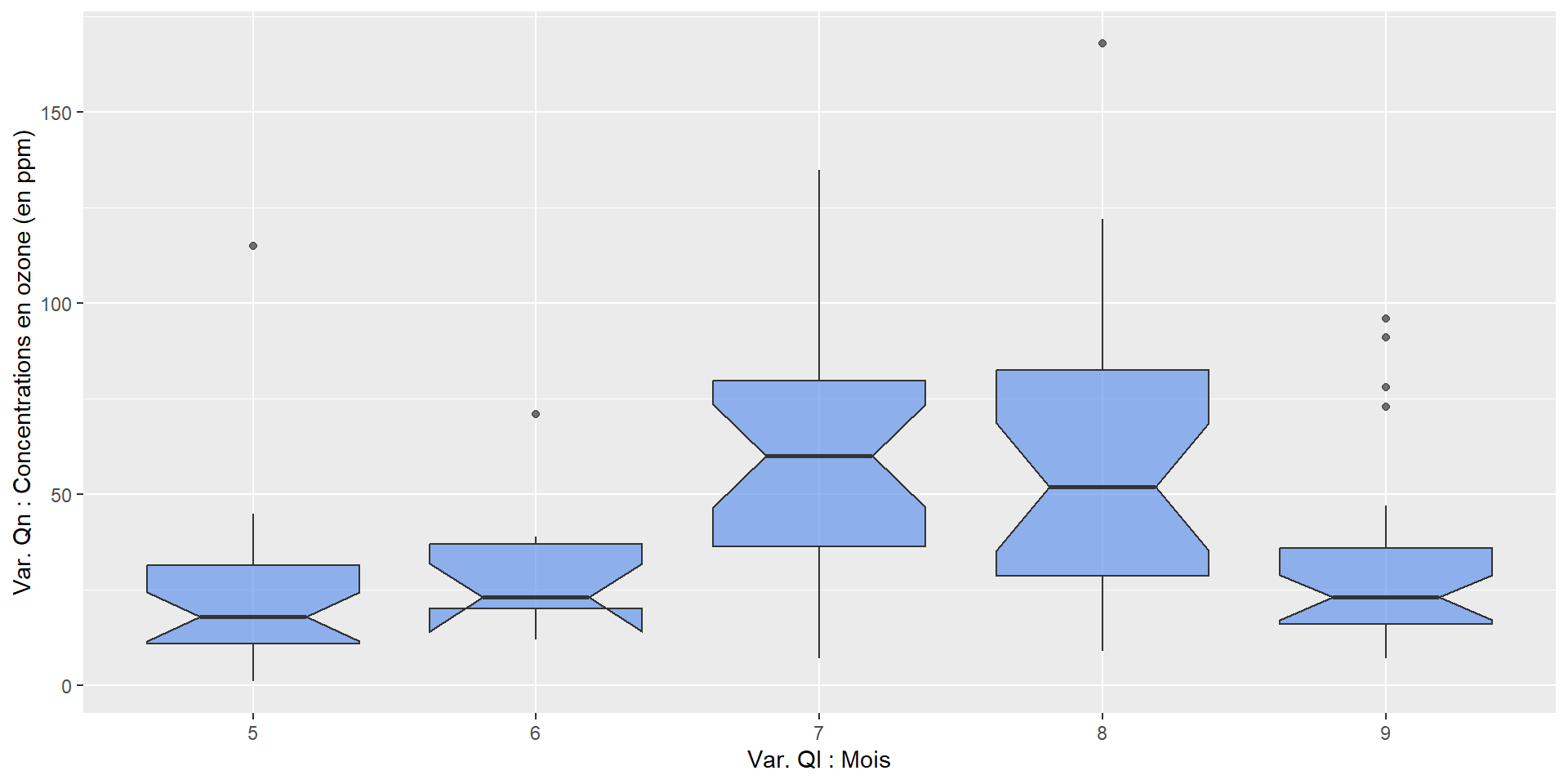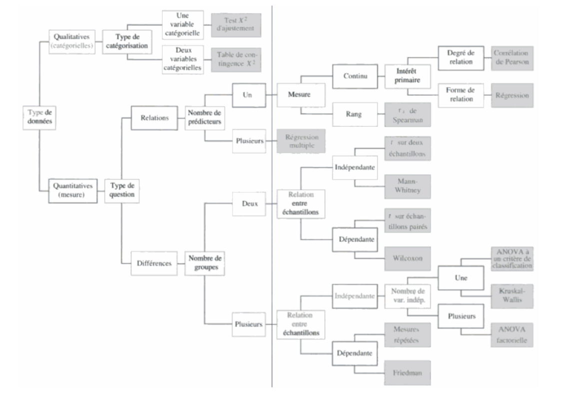 - distribution normale de la variable quantitative dans les classes de la variable qualitative (pour vérifier sous R, shapiro.test())